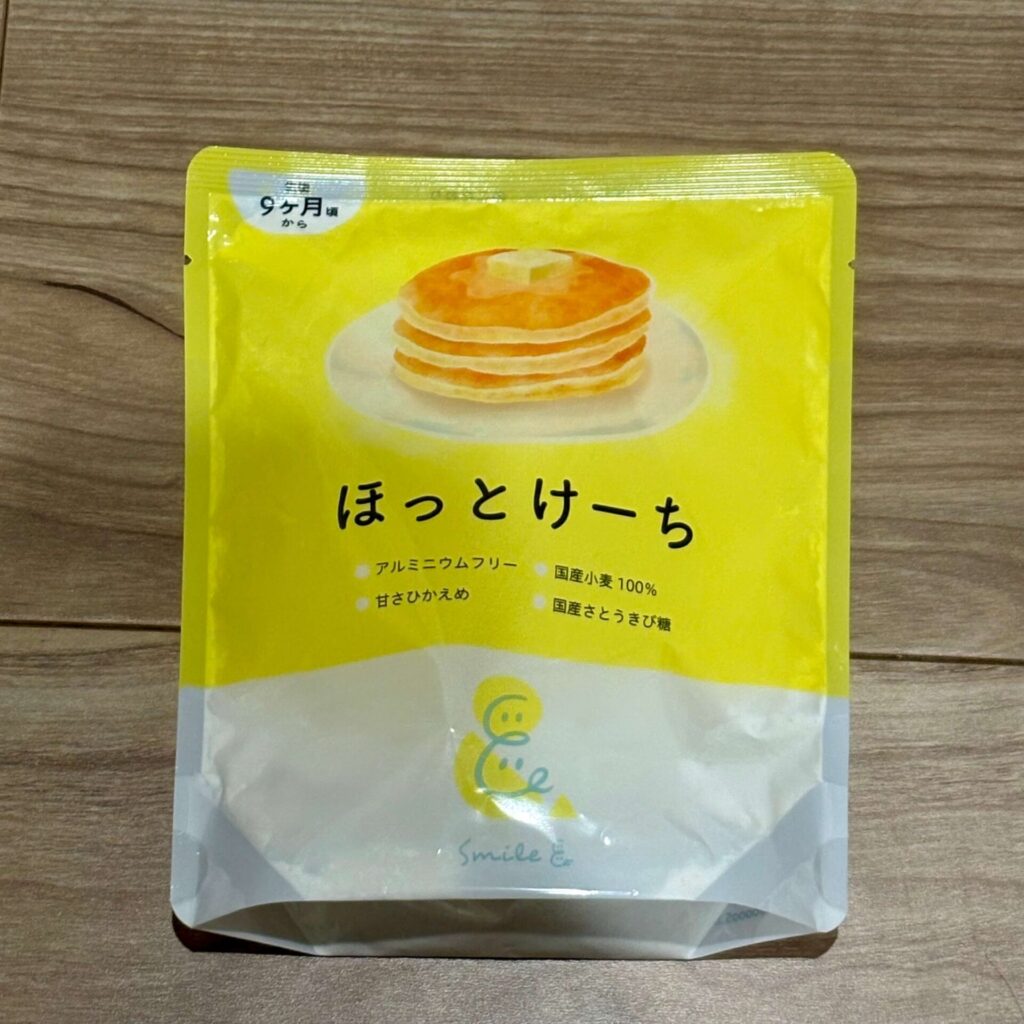 「ほっとけーち」は、離乳食後期(9ヵ月ごろ)から使える、赤ちゃんにやさしいホットケーキミックスです。