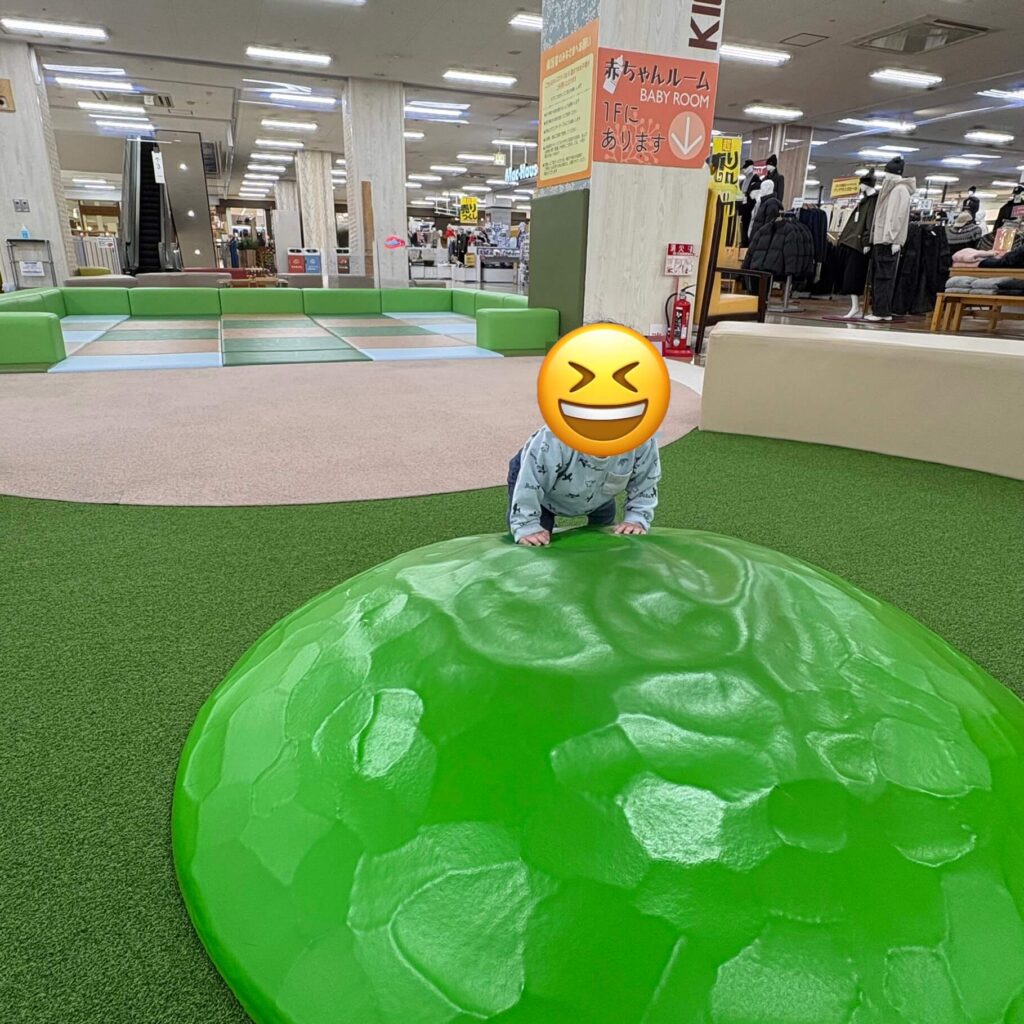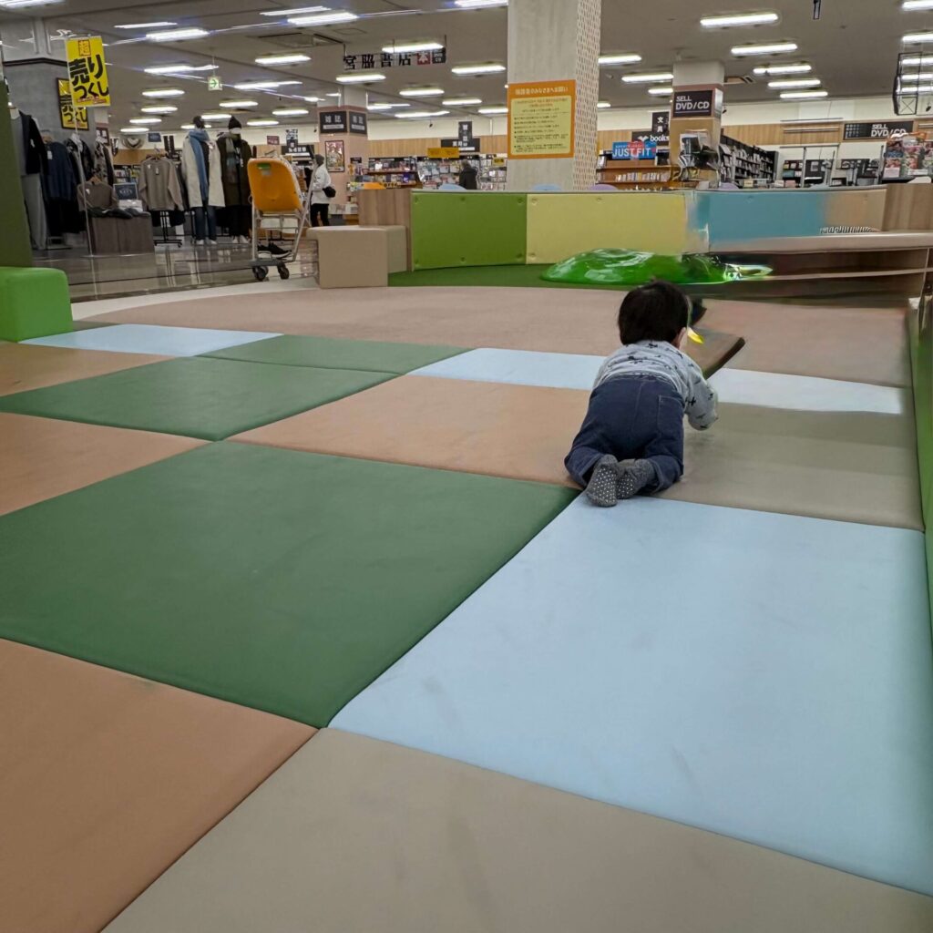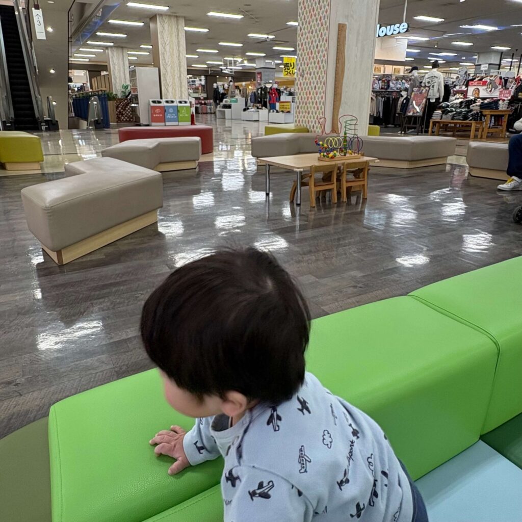 - ぐずった時のリフレッシュに最適:特に赤ちゃんは、ベビーカーにずっと乗っていると買い物中ぐずってしまうこともありますよね。ここなら自由に動き回れるので、子供の動きたい欲を満たすことができます。目安は 30分ぐらいがちょうどよいです。