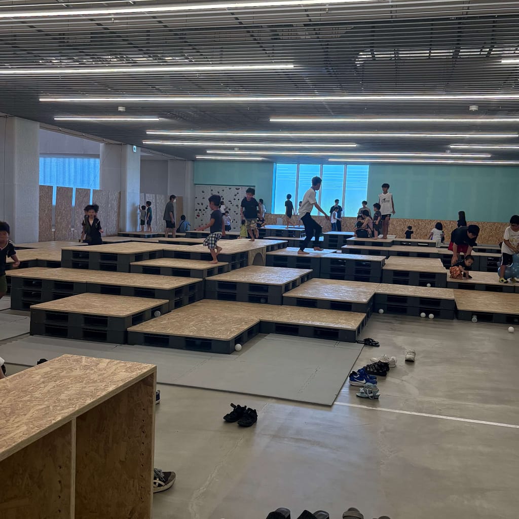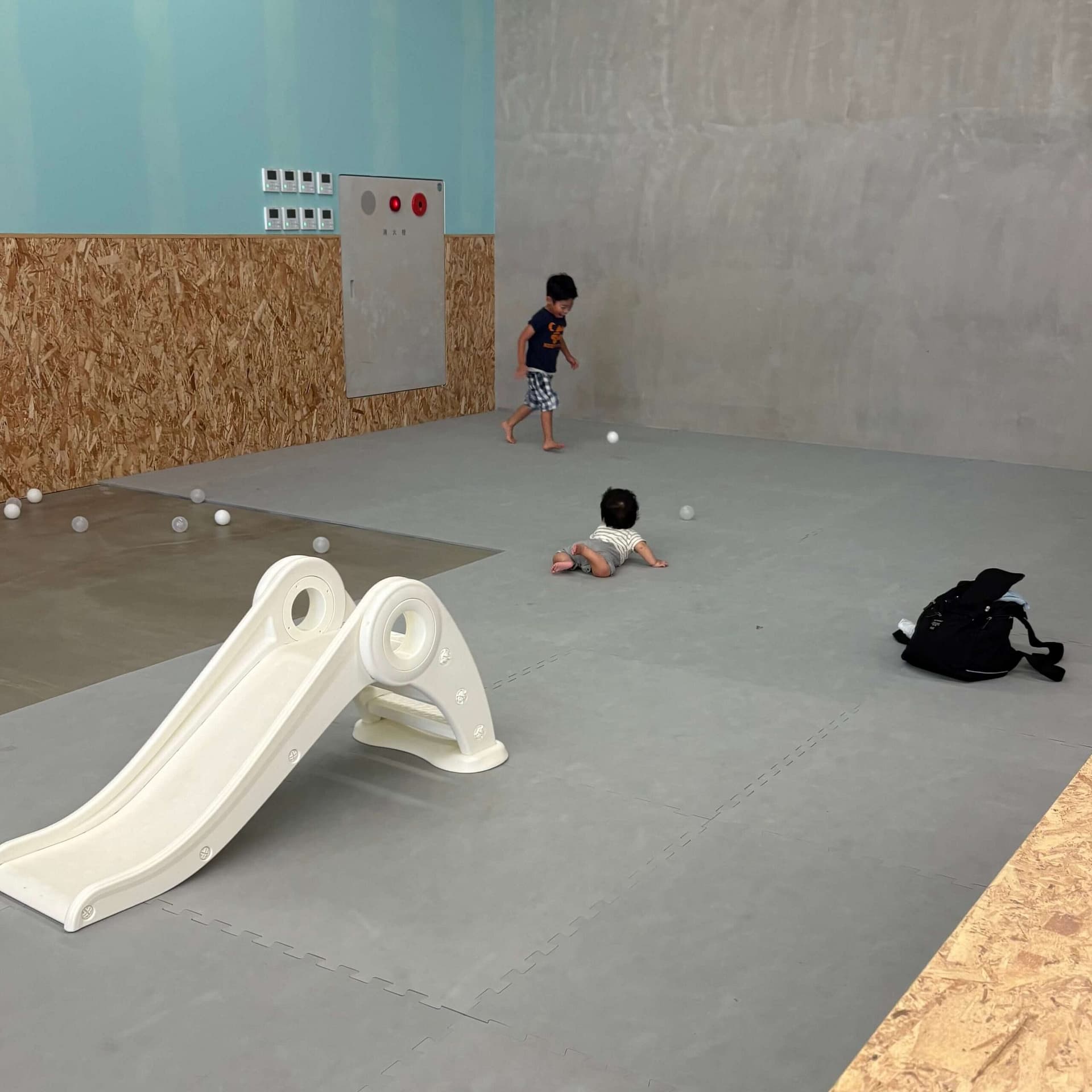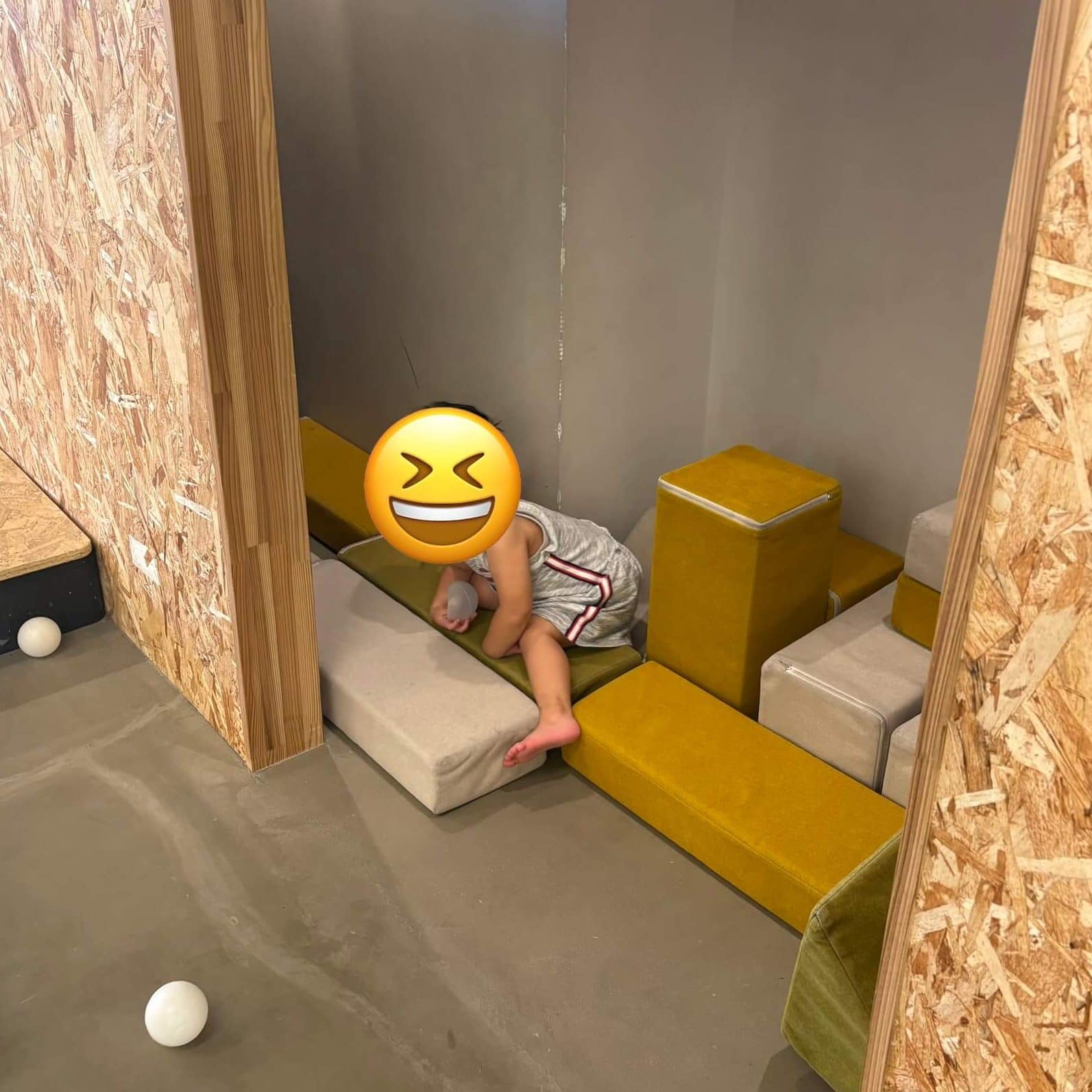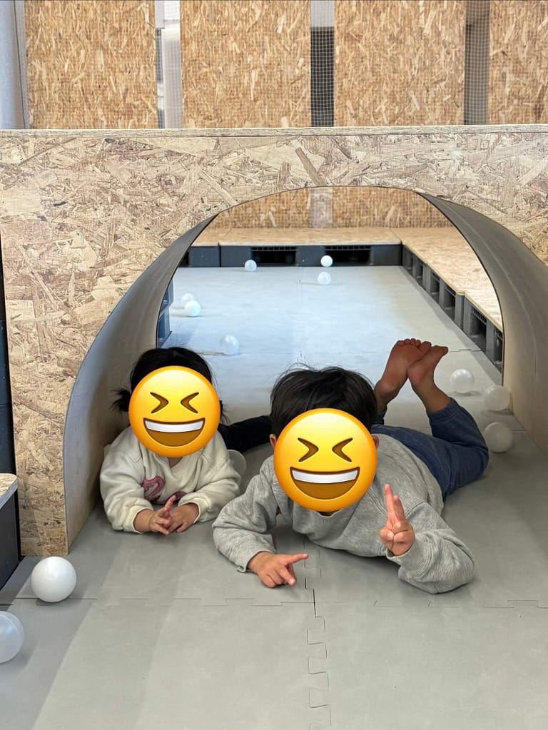 フロアの端には小さな隠れ家のようなスペースもあり、ソフトブロックを持ち込んで「自分だけの秘密基地を作る!」と子供たちは大喜びでした。