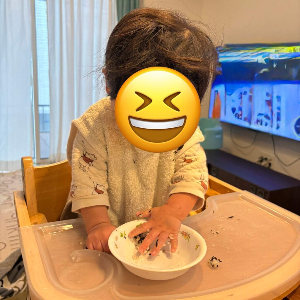 手でつまんだり、つかんだりするのも上手になってくると自分で食べたい意欲が増えてきます。