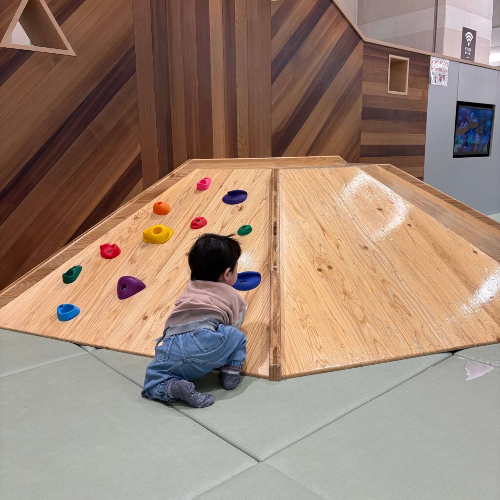 コンパクトなスペースで小さなボルダリングで全身を使って遊べます。